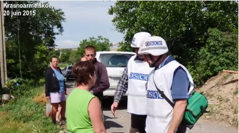 20 Ioυνίου 2015. Το χωριό Kranskoarmeïskoé που βρίσκεται ΝΑ της Μαριούπολης Νοvoazovsk βομβαρδίστηκε .Βέβαια αυτό δεν αποτελεί μια είδηση αφού οι βομβαρδισμοί είναι αδιάκοποι.Οι συμφωνίες του Μινσκ είναι κυριολεκτικά ανύπαρκτες.Αλλά αυτή τη φορά ο OSCE ήταν παρών!..