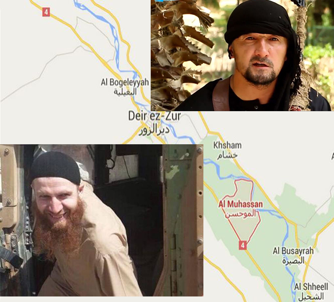 La source a indiqué qu’un haut responsable (cadre!!) de l’organisation terroriste résidant de la ville, accompagnait le criminel de guerre Abou Omar al Shishani (le Tchétchène) ainsi que Gul Murad Halimov-qui a servi en tant que commandant des forces spéciales de la police du Tadjikistan: Il a rencontré ces deux leaders djihadistes en Syrie pour une raison importante. Ils se sont dirigés avec toute une délégation armée à une mosquée voisine, et quand le soleil s’ est couché , ils ont pris un véhicule de la zone d’ Almrieih Hawijah. Il semble que Abou Omar al Shishani et le Tatzistanais Halimov, sont allés à la région pour élaborer un plan dans le but d’ attaquer l’aéroport de Deir Ezzor. Cette réunion aurait été prévue en avance , car la semaine dernière, les résidents avaient remarqué une mobilité inhabituelle par des véhicules arrivés en provenance des provinces de l’Est (champs de puits de pétrole , Abou Kamal, Hawijah Almrieih et Albuamr du territoire irakien). Selon la même source, vers 23h00 ,dans la ville d’Al Muhassan on entendait des fortes explosions et des tirs terribles. Etant donné que là s’ étaient concentrés tous les grands combattants de Daesh, des fusées de l’ armée arabe syrienne ont été lancées probablement depuis Hawijah Almrieih. Parmi les blessés étaient les sanguinaires , et maîtres de décapitation, de l’ organisation d ISIS . Il s’ est plus tard avéré qu’ autant Al Sisani que Halimov ont été ciblés.