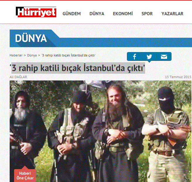 Υπάρχει υπαινιγμός ότι δολοφόνησε 3 κληρικούς με μαχαίρι σε βίντεο 9:36 minutes με ημερομηνία δημοσίευσης 28/06/2013( hurriyet 15/7/15)