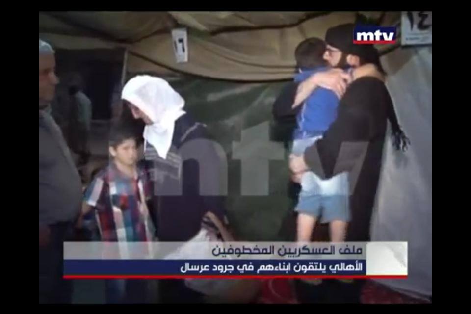 Στις εικόνες που μετέδωσε αποκλειστικά το MTV, οι όμηροι στρατιώτες είναι ντυμένοι με μαύρους μανδύες φέρουν φουλάρι στο κεφάλι και έχουν γένεια. Η συγκίνηση που επικράτησε κατά τη συνάντηση ήταν διάχυτη. Απήχθησαν 2 Αυγούστου 2014.