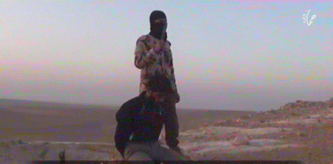 Το vidéo ανέβηκε σε λογαρισμό της οργάνωσης από το Γραφείο της Προπαγάνδας της Οργάνωσης στην δυτική περιφέρεια της Χάμα.Το θύμα μάρτυρας κατά του σεχταριστικού σουνιτικού ουαχαμπιτισμού της καθαρής απόλυτης αλλά προστατευόμενης και κηδεμονευομένης Τρομοκρατίας είναι ένας αιχμάλωτος σύριος στρατιώτης.Εκτελείται με αυτό το βάναυσο τρόπο στην ερημιά σύμφωνα με την Daily Mail.