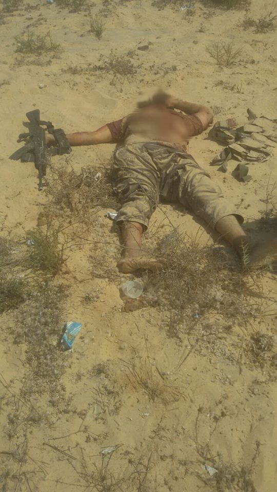Ο εκπρόσωπος τύπου αναφέρει επίσης ότι η «κατά την επιδρομή τους μέλη των ειδικών δυνάμεων περικύκλωσαν τον τρομοκράτη και του ζήτησαν να παραδοθεί αλλά εκείνος άνοιξε πυρ εναντίον τους κι επιχείρησε να ανατιναχθεί με τη ζώνη εκρηκτικών που έφερε.Οι άνδρες των ειδικών δυνάμεων ενήργησαν έγκαιρα και τον σκότωσαν.Στην κατοχή του βρέθηκαν μια χειροβομβίδα ” F1″ ,2 αυτόματα όπλα, μια ζώνη με εκρηκτικά walkie-talkie και πυρομαχικά.( youm7 Σάββατο, 1 Αυγούστου 2015 )