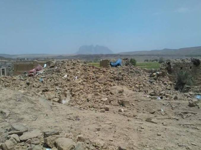 H συμμαχία που σχημάτισαν οι σαουδάραβες βομβάρδισαν το χωριό Habasha στην περιοχή Amran’s Harf Sufyan της Υεμένης καταστρέφοντας οικίες και σκοτώνοντας μια μητέρα και τα παιδιά της.Πατέρας τρελός από το πόνο περιέφερε το αποκεφαλισμένο κορμάκι της κόρης του από τους βομβαρδισμούς.