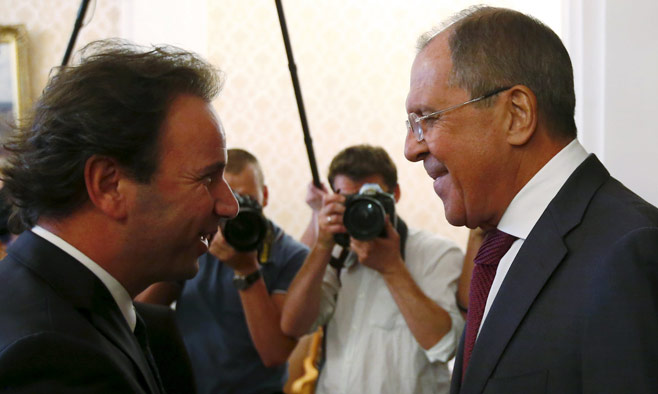 O πρόεδρος του Εθνικού Συνασπισμού για τις “επαναστατικές” συριακές δυνάμεις και την αντιπολίτευση (SNC) Khaled Khoja συναντήθηκε σήμερα 13.8.15 στη Μόσχα με τον ρώσο ΥΠΕΞ Sergueï Lavrov.