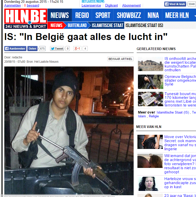 Ο αποστολέας είναι ο Abdellah Nouamane κάτοικος Αμβέρσας που εδώ και 20 χρόνια είναι μέλος της οργάνωσης Shariah4Belgium.Αυτός πλεόν αποκαλείται Abu Jihad Al-Belgiki και βρίσκεται από τον Ιούνη του 2013 στη Συρία. Πολέμησε στις τάξεις της Jabhat Al-Nusra που είναι το παρακλάδι της Al Qaïda στη Συρία πριν να ενταχθεί το Ισλαμικό Κράτος.