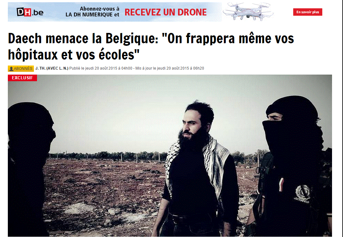 “Πλέον δεν λαμβάνουμε υπόψιν μας όλες αυτές τις συζητήσεις περί αθώων θυμάτων.Όλοι οι άπιστοι θα δολοφονηθούν.Θα τους σκοτώσουμε όπως μας σκοτώνουν” απειλεί ο βέλγος τζιχαντιστής χωρίς ν΄αναφέρει που ή πότε θα χτυπηθεί η χώρα του έδρα της ΕΕ και του ΝΑΤΟ. “Τις μέρες,εβδομάδες,μήνες και χρόνια που έρχονται δεν θα υπάρχει παρά ο τρόμος στις συνοικίες σας στους δρόμους σας μέσα στα σπίτια σας και στα υπνοδωμάτιά σας “.