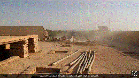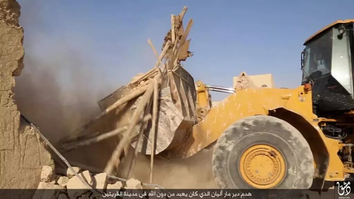 Μέλη του Ισλαμικού Κράτους καταστρέφουν και κατεδαφίζουν την μονή του 5ου.αι. Άγιος Ελιάν-Ιoυλιανός στην Al-Qaryatayn στη Συρία.Οι τρομοκράτες της ISIS ισχρυρίζονται ότι ο “άγιος Elian ήταν διακοσμημένος με παραστάσεις και σύμβολα που αντιβαίνουν τη διδασκαλία του Allah”.