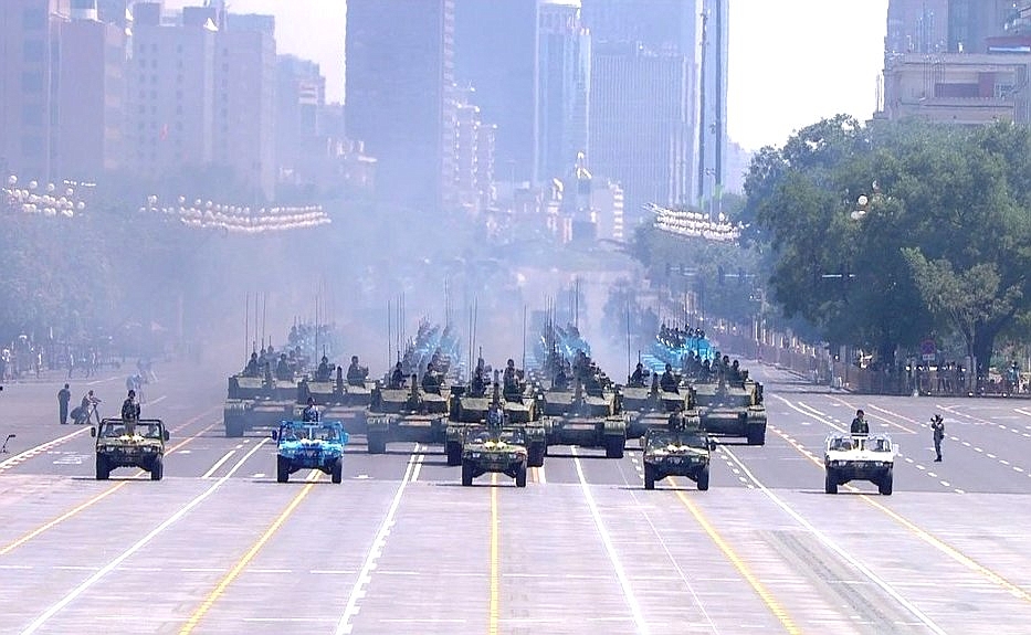 Περίπου 12 000 αξιωματικοί κι άνδρες παρέλασαν στην πλατεία Tiananmen του Πεκίνου.Συμμετείχε και η ρωσική Τιμητική Φρουρά Préobrajensky που έκλεισε και την παρέλαση.Οι άνδρες της έφεραν ειδικές στολές του πεζικού,της αεροπορίας και του ναυτικού του ρωσικού στρατεύματος.
