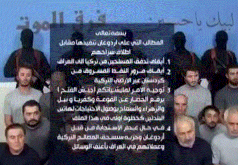 Η οργάνωση αποκαλείται “Furaq al-Mot” (τάγματα θανάτου) και μεταξύ άλλων απαιτεί από την Τουρκία να “σταματήσει τη ροή μαχητών από Τουρκία προς Ιράκ ” και να μεσολαβήσει στους ” αντάρτες ” να σταματήσουν τον αποκλεισμό των σιίτικων χωριών στο Βορρά της Συρίας Foua και Kafraya στην επαρχία του Ιντλέμπ.Η απαγωγή των 18 τούρκων επήλθε στο λίκνο των σιίτικων πολιτοφυλακών που υποστηρίζουν τις κυβερνητικές δυνάμεις στη μάχη τους κατά των εξτρεμιστών σουνιτών του Ισλαμικού Κράτους. (leparisien 11/9/15)