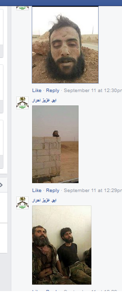 Στο μεταξύ και το φιλοαντιπολιτευόμενο στις syriahr 19.9.15 αναφέρει ότι η al-Nosra (παρακλάδι της al-Qaïda) και το Ισλαμικό Κόμμα του Τουρκεστάν εκτέλεσαν τουλάχιστον 56 σύριους στρατιωτικούς που αιχμαλωτίστηκαν κατά τις μάχες του αεροδρομίου Abu al-Duhur ανεβάζοντας σε 71 το συνολικό αριθμό των εκτελεσθέντων ομήρων στρατιωτών μετά την πτώση του αεροδρομίου.
