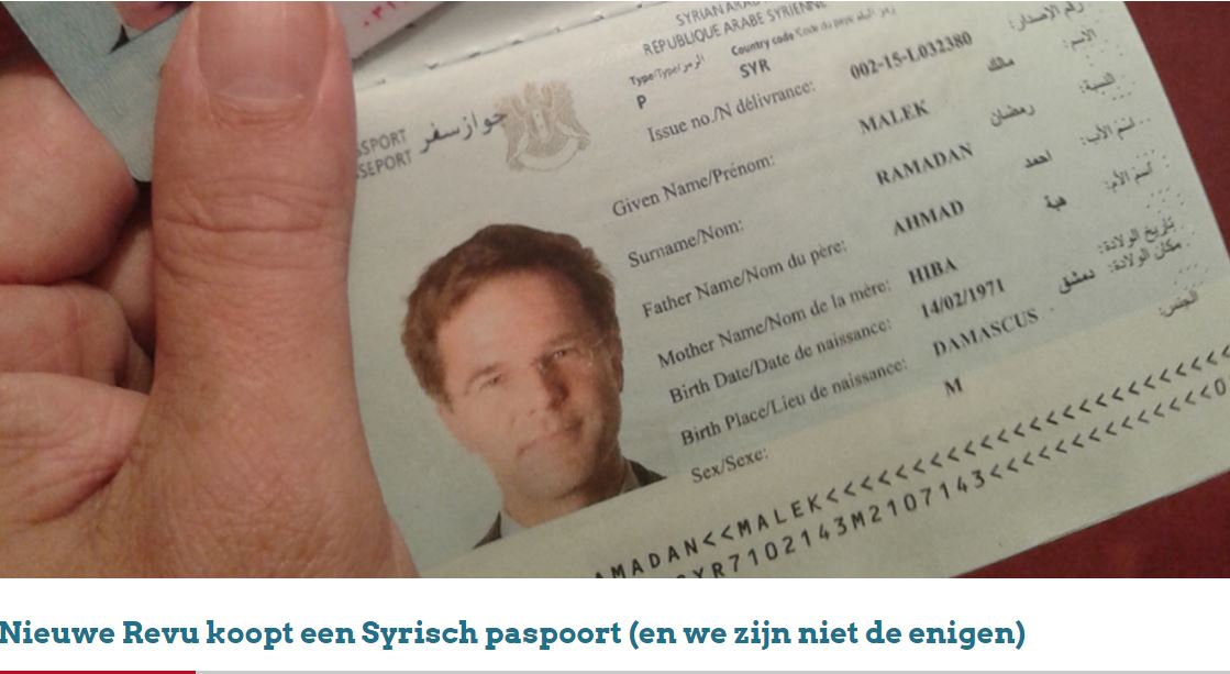 C’ est qu’ il a fait le correspondant Harald Doornbos pour obtenir un passeport syrien. Quarante heures après sa commande, Doornbos avait un passeport et une carte d’identité avec la photo du Premier Ministre Hollandais, Mark Rutte dans les mains!