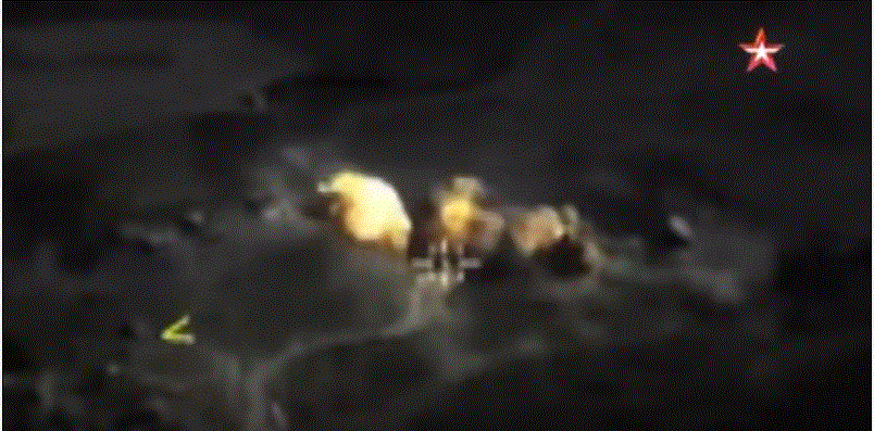 Βίντεο που καταγράφτηκε από ένα drone απεικονίζει τη στιγμή ακριβώς που η βόμβα χτυπάει το στόχο στα υψώματα και τον καταστρέφει.Σύμφωνα με το Υπουργείο Άμυνας της Ρωσίας ο στόχος ήταν αυτή η αποθήκη πυρομαχικών και εκρηκτικών των τρομοκρατών. Το βίντεο διοχετεύθηκε από το ρωσικό στρατό.Ο εκπρόσωπος Τύπου του Ρωσικού Υπουργείου Άμυνας Ιγκόρ Konashenkov δήλωσε: