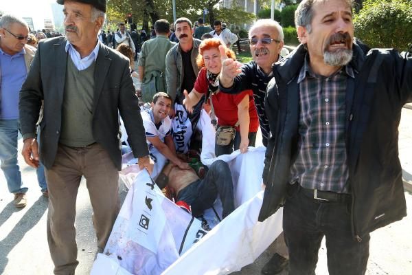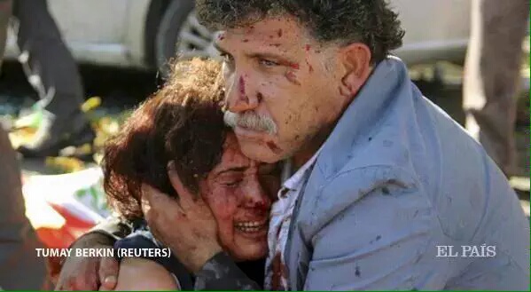 Είναι το βίντεο από τη στιγμή μιας από τις εκρήξεις βομβών στην Άγκυρα το πρωί του Σαββάτου.Σημειώνεται μέσα στο πλήθος κι ενώ οι νέοι κούρδοι χορεύουν τραγουδούν και λένε συνθήματα σε μια ειρηνική συγκέντρωση και πορεία.Δολοφονία εν ψυχρώ νέων ανθρώπων σεκταριστικό έγκλημα κατά του κουρδικού στοιχείου και των υποστηρικτών του.Η λάμψη που εκδηλώνεται λαμπαδιάζειν το πλήθος.Σύμφωνα με τις πρώτες πληροφορίες τουλάχιστον 35 είναι οι νεκροί και εκφράζονται φόβοι ότι ο αριθμός τους δύναται να αυξηθεί ακθώς υπάρχουν πολλοί τραυματίες τουλάχιστον 100 εκ των οποίων αρκετοί σε κρίσμη κατάστασηΟι εκρήξεις σημειώθηκαν κοντά στο σιδηροδρομικό σταθμό συγκέντρωση του κόμματος ΗDP και όχι μόνο.Η έκρηξη σημειώθηκε καθώς τα μεγαλύτερα συνδικάτα διαδήλωναν απαιτώντας ειρήνη δουλειά και δημοκρατία αλλά και διαμαρτύρονταν κατά της ενδυνάμωσης της τουρκικής επιχείρησης κατά των κούρδων ανατρτών.Οι εκρήξεις σημειώθηκαν στο μπλοκ του φιλοκουρδικού κόμματος.Όσο προχώραγε η ημέρα ανέβαινε ο αριθμός των θυμάτων οι τελευταίες πληροφορίες κάνουν λόγο για 86 νεκρούς και 186 τραυματίες σύμφωνα με το Υπ.Υγείας της Τουρκίας.RT