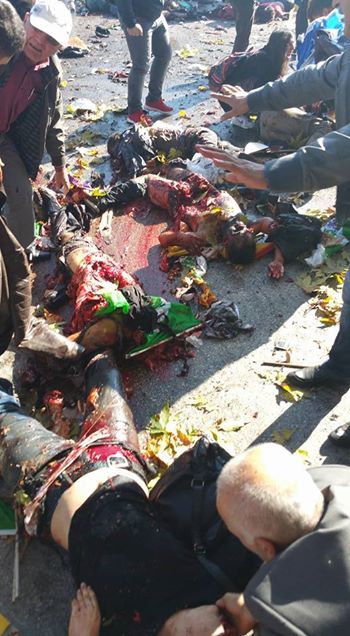 Eίναι η τρίτη φορά που επαναλαμβάνεται το ίδιο σενάριο.Το κόμμα που στοχοποιήθηκε διευθύνεται από ένα κούρδο και ήταν συναθροισμένο στην Άγκυρα για να υπερασπιστεί την ειρήνη.Γνωρίζουμε την υπογραφή αυτών των επιθέσεων.Ακόμη και στον τόπο που διαδραματίστηκε η τραγωδία η στάση της αστυνομίας ήταν διφορούμενη : μάρτυρες τραυματίες αναφέρουν ότι η αστυνομία δεν κινητοποιήθηκε να βοηθήσει τα θύματα και ότι οι τραυματίες ήταν ακόμη στον τόπο που σημειώθηκε το κακό ΄ώρες ολόκληρες μετά τις εκρήξεις και ότι κάποιοι τραυματίες ήταν δηλητηριασμένοι από αέρια ( εννοεί τα δακρυγόνα που έριξαν οι αρχές) αλλά κανείς δεν έκανε κάτι για την διακομιδή τους.Είναι οι γιατροί από τους συμμετέχοντες στη διαδήλωση που ήρθαν να βοηθήσουν τα θύματα.