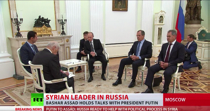 Ο πρόεδρος της Συρίας ο Bachar al-Assad είχε χθες Τρίτη 20.10.15 συνάντηση κορυφής με τον ρώσο ομόλογό του τον Βλαδίμηρο Πούτιν σε επίσκεψη έκπληξη που πραγματοποίησε στη Μόσχα μετά από πρόσκληση του ρώσου προέδρου.”Χθες το βράδυ ο σύριος πρόεδρος Bachar al-Assad έφθασε στη Μόσχα για μαι επίσκεψη εργασίας “ανακοίνωσε την Τετάρτη ο εκπρόσωπος τύπου του Κρεμλίνου Dmitri Peskov .Ο πρόεδρος Πούτιν ενημερώθηκε λεπτομερώς από το σύριο ομόλογό του για την κατάσταση που επικρατεί στη Συρία και το πλάνο μακράς διαρκείας.”Τον πληροφόρησε για τις στρατιωτικές επιχειρήσεις που είναι σε εξέλιξη και τα σχέδια του συριακού στρατού αναφορικά με τον πόλεμο κατά της τρομοκρατίας.