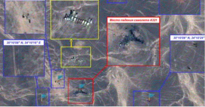 Oι αιγυπτιακές αρχές επίσης είχαν ανακοινώσει το Σάββατο ότι το γεγονός ότι εντοπίστηκαν συντρίμια σε μεγάλη ακτίνα αλλά και σώματα διάσπαρτα σημαίνει ότι το Airbus A321-200 ανατινάχθηκε στον αέρα.Αυτήν την εκδοχή επιβεαίωσαν και οι ρώσοι εμπειρογνώμονες την Κυριακή.Αυτό δήλωσε ο Διευθυντής της Διακυβερνητικής Επιτροπής αεροπλοίας (MAK).IRIB