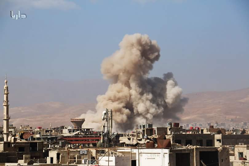 Σύμφωνα με στρατιωτική πηγή των Μονάδων Εθνικής Άμυνας Δαμασκού ο στρατός κατέκτησε πολλά οικοδομικά μπλοκ γύρω από τις περιοχές: Mahawar Al-Talya, το κρατικό νοσοκομείο της Darayya, το συνοικισμό της Ένωσης Darayya, Dawar Al-Firin, το ξενοδοχείο 4 Εποχές και επί του δρόμου του εργοστασίου Darayya.Για 8 ημέρες μάχονταν τα αντίπαλα στρατόπεδα για τον εέλγχο αυτής της πόλης αφότου ο στρατός εξεπέλυσε αιφνιδιαστική επίθεση για ν΄ανακτήσει το απωλεσθέν έδαφος από τις Ajnad Al-Sham και Liwaa Shuhada Al-Islam την αρχή του Σεπτέμβρη.οι ρωσικές και συριακές αεροπορικές επιδρομές εντάθηκαν.