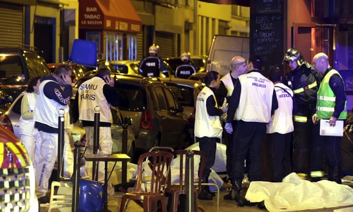 Νύχτα του Αγίου Βαρθολομαίου στο Παρίσι.Πολλές τρομοκρατικές επιθέσεις είναι σε εξέλιξη στο Παρίσι.Tελευταίος απολογισμός από τις πολλές επιθέσεις τουλάχιστον 120 νεκροί σύμφωνα με το ΑFP και 4 νεκροί τρομοκράτες. Εκρήξεις στο στάδιο Stade de France όσο και στο 10ο διαμέρισμα του Παρισιού. Πολλοί νεκροί και τραυματίες.Νωρίτερα στις 22h26 CET πολλοί τραυματίες στο δρόμο Bichat (10ο διαμέρισμα) όπου επίθεση διαδραματίζεται αυτή τη στιγμή.Έκρηξη σε μπαρ κοντά στο Stade de FranceΚρατούνται όμηροι στο Βataclan.france 24Το στάδιο Stade de France έκλεισε ενώ πολλές εκρήξεις ακούστηκαν στο εξωτερικό. .franceinf