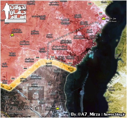 Στην απίστευτη προέλασή του ο στρατός απελευθέρωσε δεκάδες χωριά από την ISIS όπως τα Habouba al-Saqira, Habouba al-Kabira, Rasm Harmal al-Saqir, Rasm Harmal al-Kabir, Rasm al-Aboud αφότου ανέκτησε το σταθμό ύδατος al-Babiri αναφέρει το FARS.