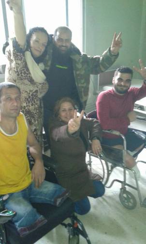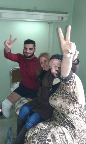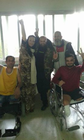 Στο στρατιωτικό νοσοκομείο βρεθήκαμε με τους αναπήρους πολέμου τους ζωντανούς μάρτυρες.Ένας κύριος έχει 6 παιδιά. Τα πόδια του κομμένα ως την κοιλιά. Ένας άλλος έχει 3 παιδιά. Και οι δυο τους τραυματίστηκαν στις μάχες για την απελευθέρωση του Χαλεπίου. Το ηθκό τους ωστόσο είναι πολύ καλό αν και είναι συγκινημένοι.