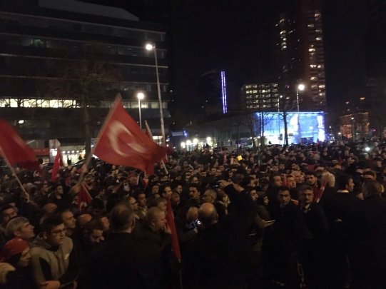 Έκρυθμη η κατάσταση στο Ρότερνταμ αφού εκατοντάδες τούρκοι διαδηλωτέςπολιορκούν το τουρκικό προξνείο και διαμαρτύρονται για την απαγόρευση πτήσης του Mevlüt Cavusoglu και την ακύρωση της ομιλίας του για το δημοψήφισμα.Υπάρχουν συλλήψεις.