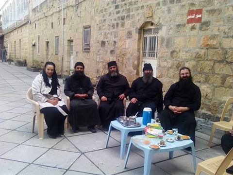 Μας πρόσφεραν καφέ και στήθηκε ένα πρόχειρο αρχονταρίκι στην αυλή της μονής.Ένας μοναχός μιλούσε ελληνικά κι ένας άλλος γαλλικά. Ο ηγούμενος της αδερφότητας τελείωσε την Θεολογική Σχολή στην Αθήνα.