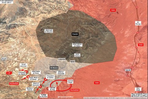 H Hezbollah ανέκτησε Wadi Al-Khayl,Al-Qanzah,Jiwar Al-Sheikh,Wadi Krayde,Dalil Al-Abyad,Sarj Qweisef κοντά στην Αrsal από τους τρομοκράτες της αλ Νούσρα.