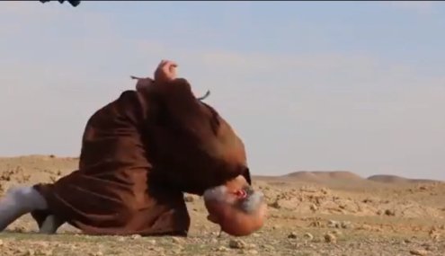 To θύμα έχει τα χέρια πισθάγκωνα δεμένα και είναι καθηλωμένο στα γόνατα. O μεσήλικας εκτελείται εν ψυχρώ με ριπή όπλου που τον στοχεύει απευθείας στο κεφάλι.To Η εκτέλεση γίνεται σε υπαίθριο χώρο και ενώ είναι πάντα σε εξέλιξη η μάχη για τον έλεγχο της πόλης της Ράκα.