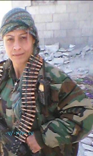 Je suis une mère de trois filles et, en tant que mère, je soutiens mes enfants; C’est aussi le cas dans l’armée arabe syrienne. J ‘y transmets de la force via ma présence et mon action dans les batailles, c’est pourquoi je suis connue comme la “mère Al Kurdi”. Même si mon travail est pratique et opérationnel avec les mains, le corps et les armes, mon coeur participe également, mon coeur se brûle pour mon pays et pour le peuple.