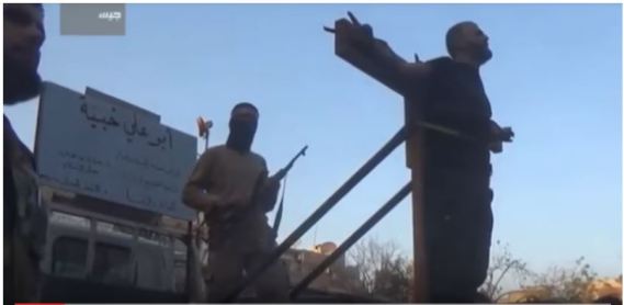 Μια από τις κυριότερες οργανώσεις της αυτοαποκαλούμενης ”συριακής αντιπολίτευσης” ο Ισλαμικός Στρατός η Jaysh al Islam σταυρώνει και περιφέρει στα προάστια της Δαμασκού στην Α Γκούτα, τον Abu Ali Khbayah (Khabia).Τον εκτελεί στη συνέχεια ακολουθώντας μέθοδο της Daesh.