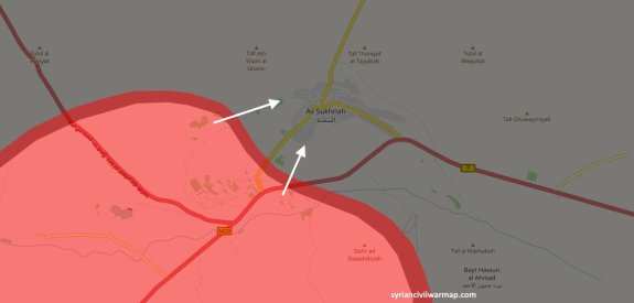 Σύμφωνα με αξιόπιστες αναφορές φέρεται ο συριακός στρατός να μπαίνει στην στρατηγικής σημασίας πόλη Sukhnah στην συριακή έρημο στην επαρχία της Χομς στα διοικητικά όρια με την επαρχία της Ντέιρ Έζζορ που την ελέγχει η ΙSIS.