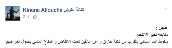 Η τελευταία της ανάρτηση πριν 3 ώρες στον προσωπικό της λογαριασμό στο fb μιλάει για κατάρρευση πολυκατοικίας κοντά στο στρατόπεδο και ότι υπάρχουν εγκλωβισμένοι στα ερείπια και ότι οι διασώστες δίνουν μάχη ανάσυρσή τους.