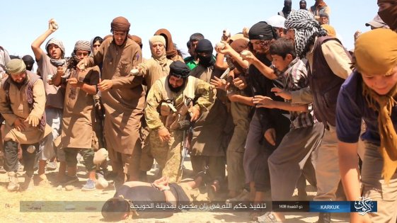 Mέλη της ISIS λιθοβολούν και σκοτώνουν για μοιχεία έναν άνδρα στο Κιρκούκ.Η ανάρτηση είναι με ημερομηνία 14 Αυγούστου.To λιθοβολεί με μένος τον άνδρο που κοίτεται στο έδαφος. Ως και μικρά παιδιά συμμετέχουν στην εκτέλεση.Προγήθηκε δίκη παρωδία σαριακού τύπου κι αναγνώστηκε το κατηγορητήριο.