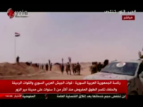 H δορυφορική συριακή κρατική τηλεόραση ανακοινώνει κι επίσημα ότι λύθηκε η πολιορκία στη Ντέιρ Έζζορ.