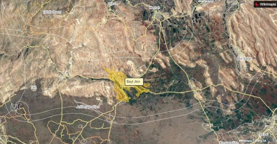 Στο νοτιότερο άκρο της περιφέρειας Δαμασκού στα ΝΔ της συριακής πρωτεύουσας στο συριακό Γκολάν στους πρόποδες του όρους Hermon διεξάγονται σφοδρές μάχες μεταξύ συριακού στρατού και τρομοκρατών καθώς ο στρατός επιχειρεί να προελάσει βόρεια του χωριού Beit Jin ή Beit Jann στη συνοριογραμμή με Ισραήλ.