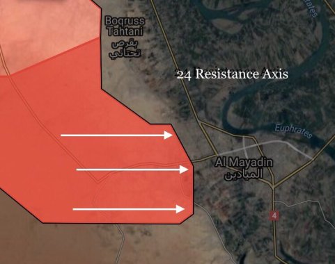 Ο στρατός μ΄εμπροσθοφυλακή τις δυνάμεις του Tίγρη μπήκε στην AlMayadeen από τα δυτικά από 3 άξονες και κατέλαβε Σιταποθήκες, υπεραγορά, αυτόματους φούρνους και το κάστρο Rahbah αναφέρουν τα μέσα του πολέμου.Σύμφωνα με φιλοκυβερνητική πηγή ο στρατός ήδη απελευθέρωσε τη δυτική πλευρά της πόλης και συνεχίζει την προέλαση.