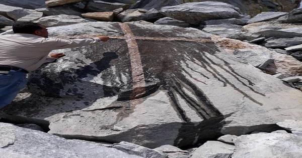 Θα μπορούσε να είναι ένα φυσιολογικό γεγονός, αλλά πάνω στο βράχο υπήρχε το σημείο του σταυρού σε μια εκπληκτικά γεωμετρική κλίμακα .