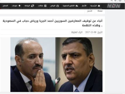 Η Σ Αραβία εξέδωσε ένταλμα σύλληψης κατά των Ahmed al-Jarba και Riad Hijab ηγετικών στελεχών της αυτοαποκαλούμενης αντιπολίτευσης σύμφωνα με μιντιακές πηγές το βράδυ της Κυριακής. Ο Ahmed al-Jarba αν και θήτευσε επί σειρά ετών επικεφαλής της είχε και σαουδαραβικό διαβατήριο αφού στο Ριάντ έζησε για δεκαετίες.Μαζί με τον Riad Hijab θεωρούνται και είναι στην πτέρυγα της ”συριακής αντιπολίτευσης” σαουδαραβικών συμφερόντων που ήταν επικεφαλείς των διαπραγματεύσεων στη Γενεύη και σε άλλα φόρουμ.