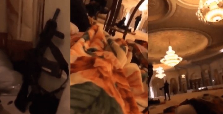 Είναι στοιβαγμένοι στο έδαφος σε στρώματα.Στο βίντεο, αρκετοί κρατούμενοι εμφανίζονται σε μια μεγάλη αίθουσα στο ξενοδοχείο, περιτριγυρισμένοι από αρκετούς φρουρούς ασφαλείας που τους φυλάσσουν.Η αυθεντικότητα του βίντεο δεν έχει ακόμη ελεχθεί από ανεξάρτητη πηγή σύμφωνα με το bintjbeil που το παρουσιάζει.