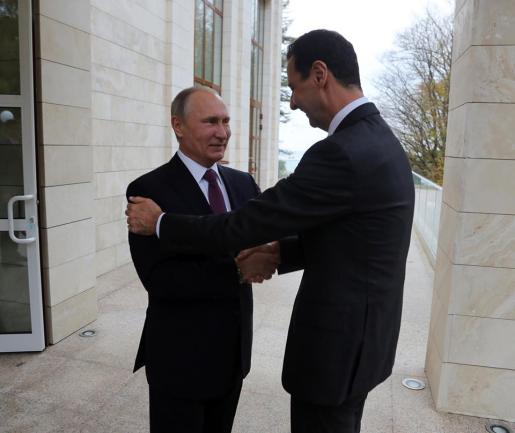 Από την πλευρά του ο πρόεδρος al-Assad ευχαρίστησε το ρώσο ομόλογό του για την καλή υποδοχή λέγοντας : «αυτή η συνάντηση επέρχεται μετά από 2 χρόνια και κάποιες εβδομάδες από τη ρωσική πολεμική επιχείρηση που υποστήριξε το συριακό στρατό στον πόλεμο του κατά της τρομοκρατίας και πραγματοποίησε εντυπωσιακά αποτελέσματα σε όλα τα επίπεδα και στα κορυφαία όπως είναι το ανθρωπιστικό το στρατιωτικό και το πολιτικό ».