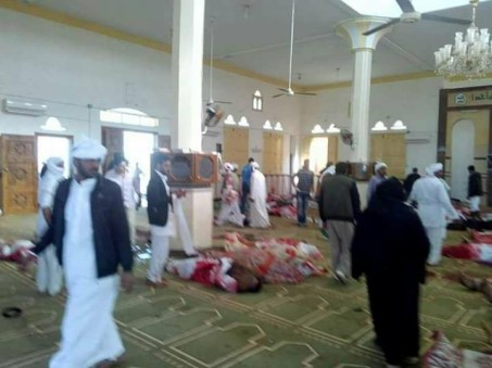 Toυλάχιστον 184 άτομα σκοτώθηκαν από βόμβα και επίθεση ενόπλων σε τζαμί στην Αίγυπτο στο Β Σινά σύμφωνα με κρατικά media.O αριθμός των νεκρών αυξάνεται από στιγμή σε στιγμή και πηγές τώρα αναφέρουν ότι οι νεκροί ξεπέρασαν τους 200 και 130 είναι οι τραυματίες σύμφωνα με youm7, elbalad.