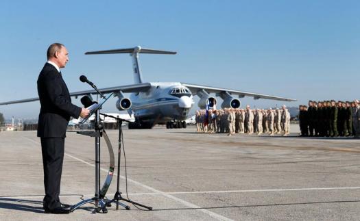 Σε δύο χρόνια, οι ρωσικές ένοπλες δυνάμεις μαζί με το συριακό στρατό νίκησαν την αποτελεσματικότερη ομάδα διεθνών τρομοκρατών. Σε σχέση με αυτό, έλαβα μια απόφαση: ένα σημαντικό τμήμα του ρωσικού στρατιωτικού σώματος στην Αραβική Δημοκρατία της Συρίας επιστρέφει στη Ρωσία.