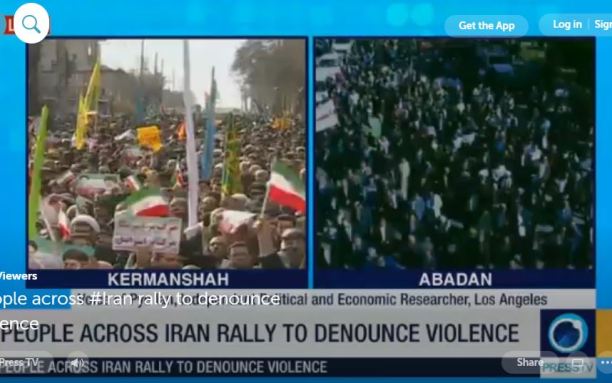 Tην Τετάρτη σε πολλές ιρανικές πόλεις έγιναν κινητοποιήσεις για να καταγγείλουν τις ταραχές και ν΄απαιτήσουν την λογοδοσία και την τιμωρία όσων ενέχονται.Δεκάδες χιλιάδες ιρανοί διαδήλωσαν την Τετάρτη στοςυ δρόμους και ύψωσαν τη φωνή τους στην υποστήριξη της Ισλαμικής Δημοκρατίας και καταδίκασαν το πρόσφατο κύμμα βίας σε κάποιες περιοχές του Ιράν.Κρατούσαν ιρανικές σημαίες και φώναζαν φιλοκυβερνητικά συνθήματα. al manar.