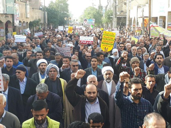 Σε αυτό το πλαίσιο, μαζικές διαδηλώσεις προκλήθηκαν σε πολλές ιρανικές πόλεις, συμπεριλαμβανομένης της Ahvaz, Bouchehr, Ilam, Khorramabad, Gorgan και Qom και αλλού.Οι διαδηλωτές κραύγαζαν συνθήματα καταδικάζοντας τις ταραχές, κι απαίτησαν την τιμωρία των συμμετεχόντων.