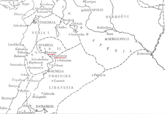 Οι δυτικοί πάλι χωρίζουν τη Συρία: πρώτος ο Σεπτίμιος Σεβήρος διαίρεσε τη Συρία σε Κοίλη και Φοινικική. Τον 4ο αι. αποσπάται η Ευφρατασία-Euphratesia από τη Συρία στην ίδια περιοχή που σήμερα οι ΗΠΑ φτιάχνουν το κουρδικό προτεκτοράτο τους. Το πρώτο όνομα της Χάμα ήταν Επιφάνεια…..το Κhanaser ανέδειξε σπουδαίους επισκόπους το 5ο αι.