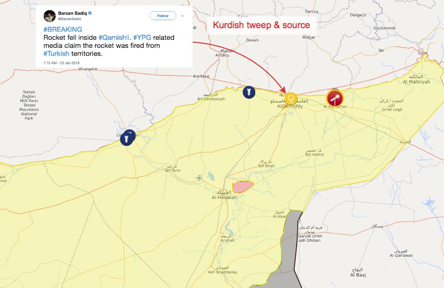 “Τα τουρκικά αεροπλάνα ξανάρχισαν χτυπήματα σε παραμεθόριθες περιοχές στα ΒΔ του Afrine”, προσθέτει.