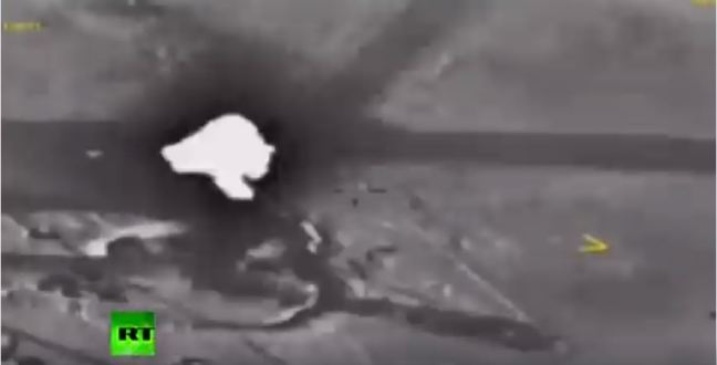 To ρωσικό υπουργείο Άμυνας παρουσίασε βίντεο από αεροπορική επιδρομή κατά των 30 τζιχαντιστών στο Ιντλίμπ.