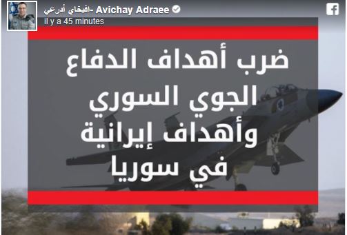 Μια νέα αεροπορική επίθεση το πρωί από το Ισραήλ κατά της περιφέρειας Δαμασκού.Η συριακή αεράμυνα ανταπαντά και στέλνει πυραύλους εδάφους εδάφους στα κατεχόμενα στο Ισραήλ.Στα καταφύγια οι ισραηλινοί. Ηχούν σειρήνες. Έκλεισε μερικώς ο εναέριος χωρος του Ισραήλ. Κατάσταση πολέμου.Συνετρίβη ισραηλινό μαχητικό F16 μετά την κατάρριψη του από συριακή αεράμυνα.Ο εκπρόσωπος του ισραηλινού στρατού ο Αvichai Adrai, στο “Facebook” δηλώνει ότι τα ισραηλινά μαχητικά χτύπησαν 12 στόχους στη Συρία συμπεριλαμβανομένων 3 συστοιχιών αντιαεροπορικών και 4 ιρανικούς στόχους.
