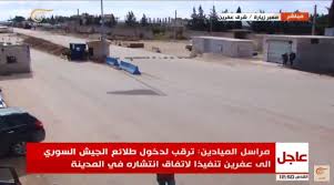 O τουρκικός στρατός σφυροκόπησε θέσεις που εξυπηρετούν το πέρασμα του συριακού στρατού στην κατεύθυνση του Afrin αναφέρει το παναραβικό κανάλι (Al-Mayadeen TV) κι αναμεταδίδει το AL Al-Manar. dimpenews.com