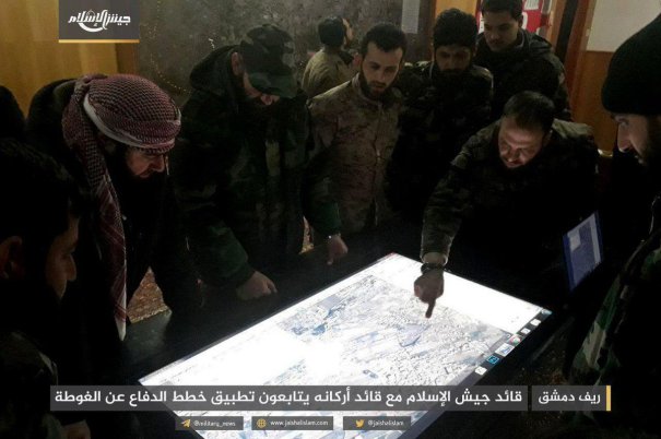 Ο Suhail al-Hassan o επονομαζόμενος Τίγρης και ρώσοι αξιωματούχοι έχουν λάβει ήδη τις θέσεις τους στο επιτελείο στη Δαμασκό κι ετοιμάζονται για την έναρξη της επιχείρησης Δαμασκός. O στρατός θα ξανακάνει την τελευταία του προειδοποίηση για τους τρομοκράτες της Γκούτα όπου θα επαναλάβει ότι θα συμβεί στην Δαμασκό ακριβώς ότι συνέβη και στο Χαλέπι.΄Η θα δεχθούν ν΄ αποχωρήσουν όλοι οι ένοπλοι και να μπει ο στρατός σε ολόκληρη την Γκούτα και Douma διαφορετικά ο στρατός μπαίνει με το δικό του τρόπο και οι ένοπλοι θα πάνε στους τάφους τους.Ο Τίγρης μίλησε και για τους τελευταίους βομβαρδισμούς κτά της Γκούτα και είπε αυτούς τους βομβαρδισμούςδεν τους κάναμε εμείς αλλά ο ίδιος ο Θεός. Την ίδια στιγμή η Jaysh al Islam η κυριότερη τρομοκρατική οργάνωση στην περιφέρεια Δαμασκού διακινεί υλικό με τον αρχηγό της Isaam Buvejdani, και κορυφαίους διοικητές της να μελετούν και να σχεδιάζουν την υπεράσπιση της Ανατολικής Ghouta από τον συριακό αραβικό στρατό.dimpenews.com